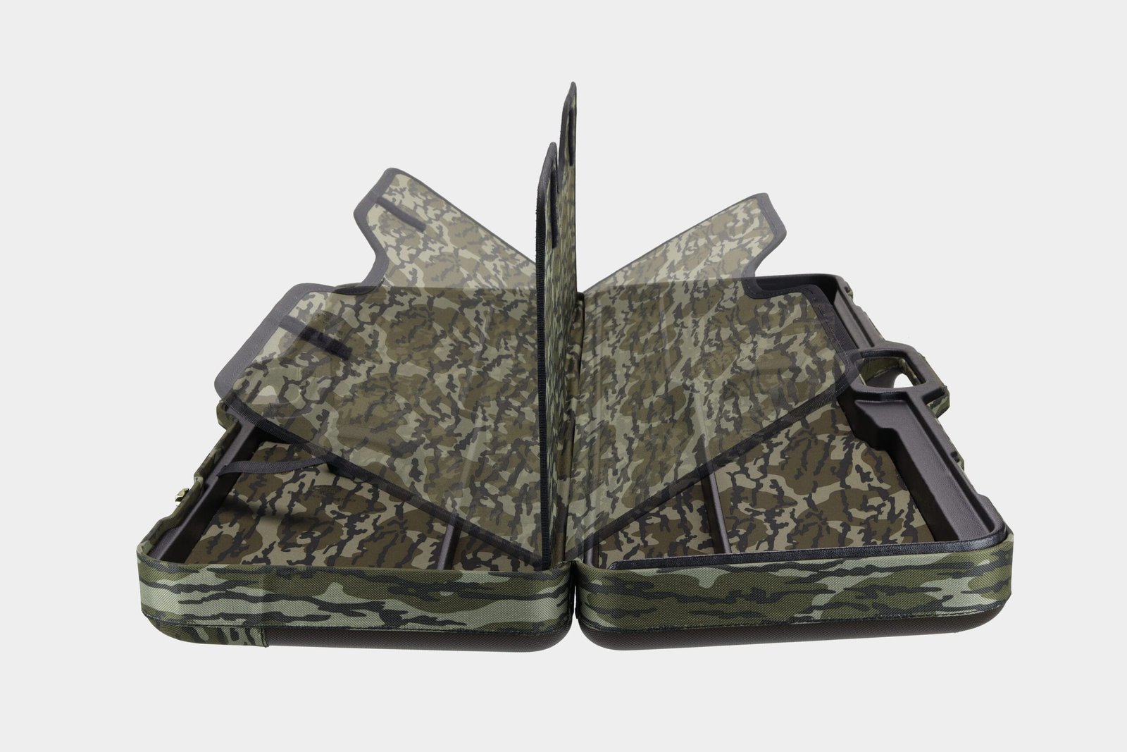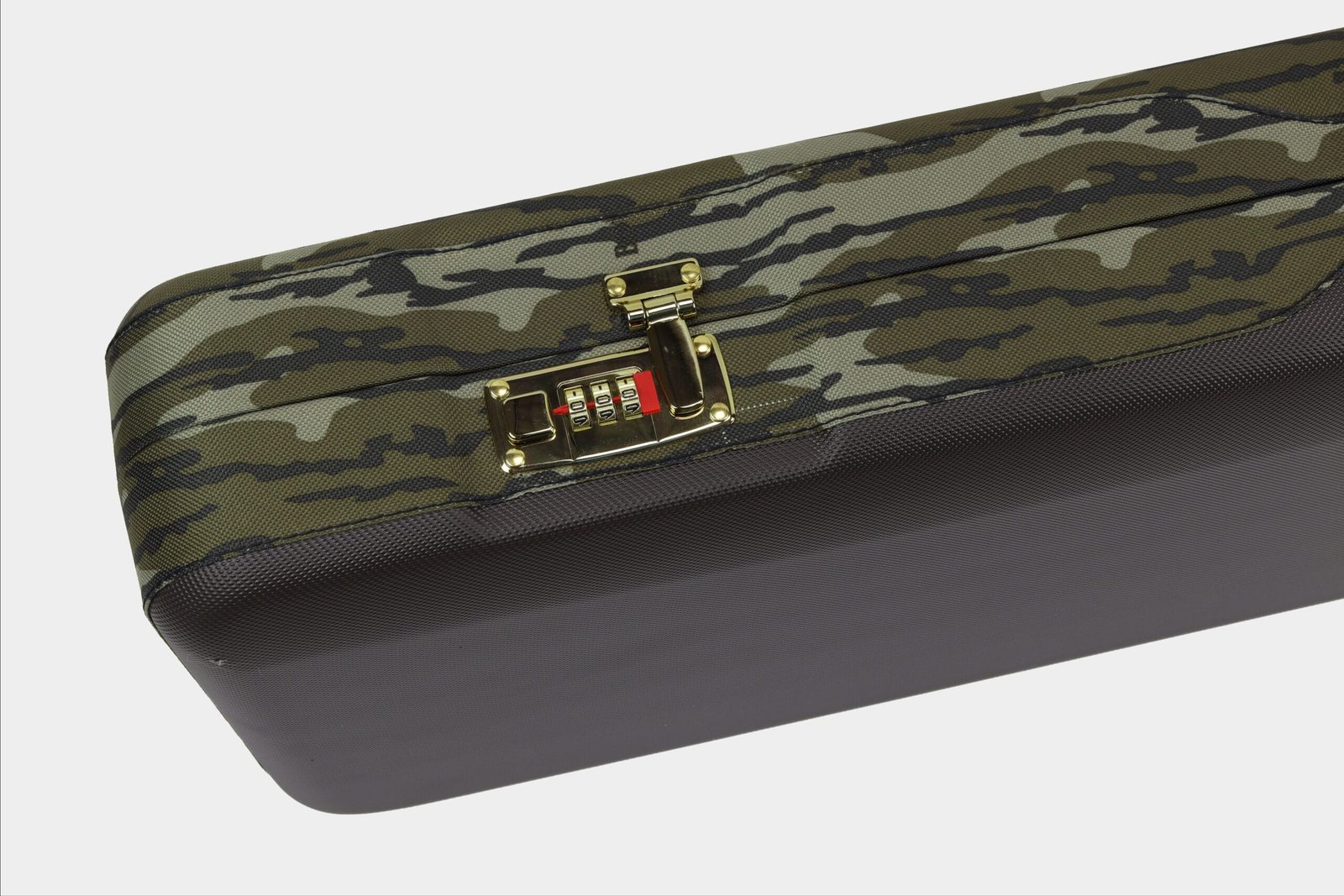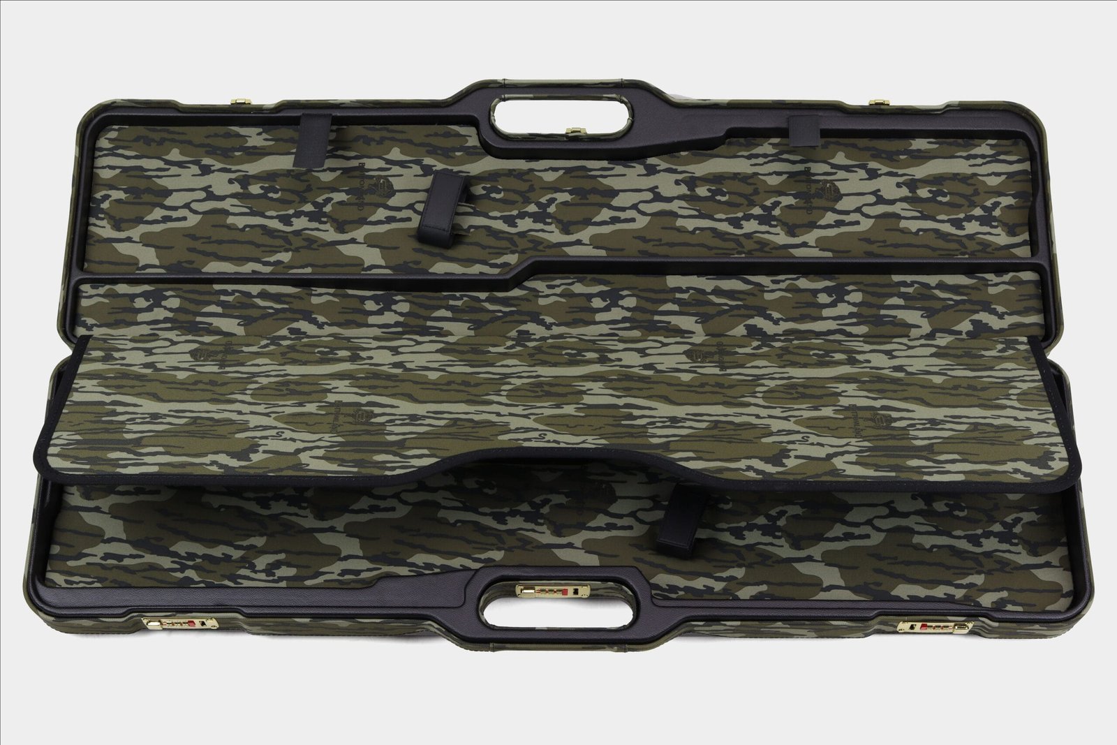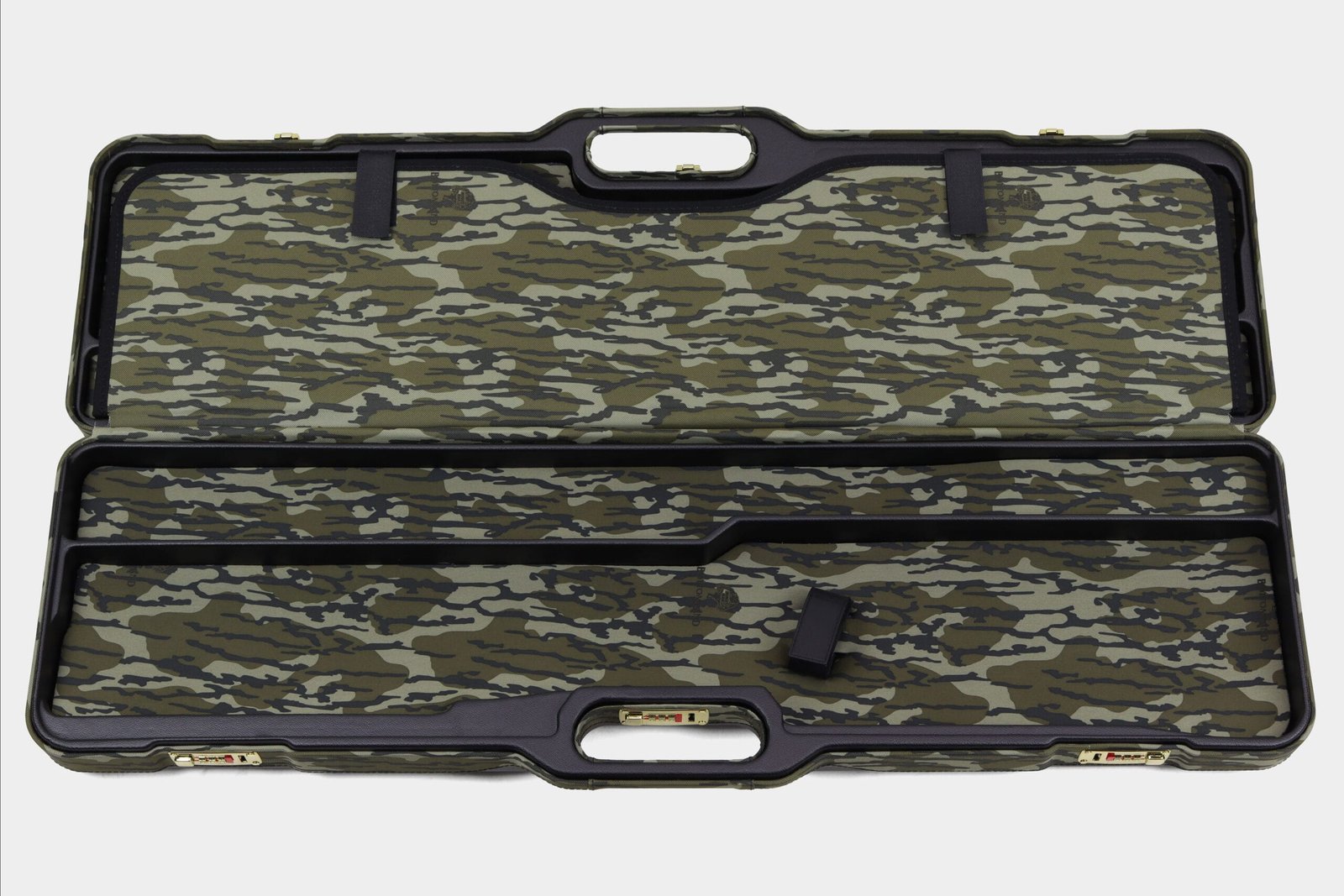 Bring the RUCKUS! The all-new Duck Ruckus Double Duck Shotgun Travel Case in Mossy Oak Original Bottomlands is the ultimate one-size-fits-all shotgun case. 100% Made in Italy, The sleek Italian design of the new Duck Ruckus double shotgun case fits all duck hunting shotguns in all gauges. Ultralight and more compact than any duck shotgun case on the market. The interior is finished with Mossy Oak Original Bottomlands with ample storage for any over-under, side-by-side, semi-auto, or pump shotgun. One shotgun is stored on the bottom side with a padded bottom. The top of the double shotgun case stores the second shotgun with padded bottoms. All Duck Ruckus cases are hand-upholstered and finished in Quistello, Italy. Each case is manufactured with a rigid double-wall ABS technology, opens 180° for easy access, and is secured with three TSA Compliant steel combination locks for security. The Duck Ruckus two shotgun case is compact and ultralight which is suitable for lightweight air travel or car, club, and home storage.
